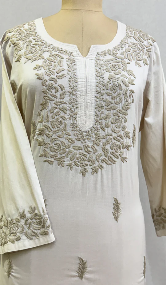 Buy online lucknowi chikankari kurti, lucknowi chikan kurti, online chikankari kurti - Nazrana Chikan