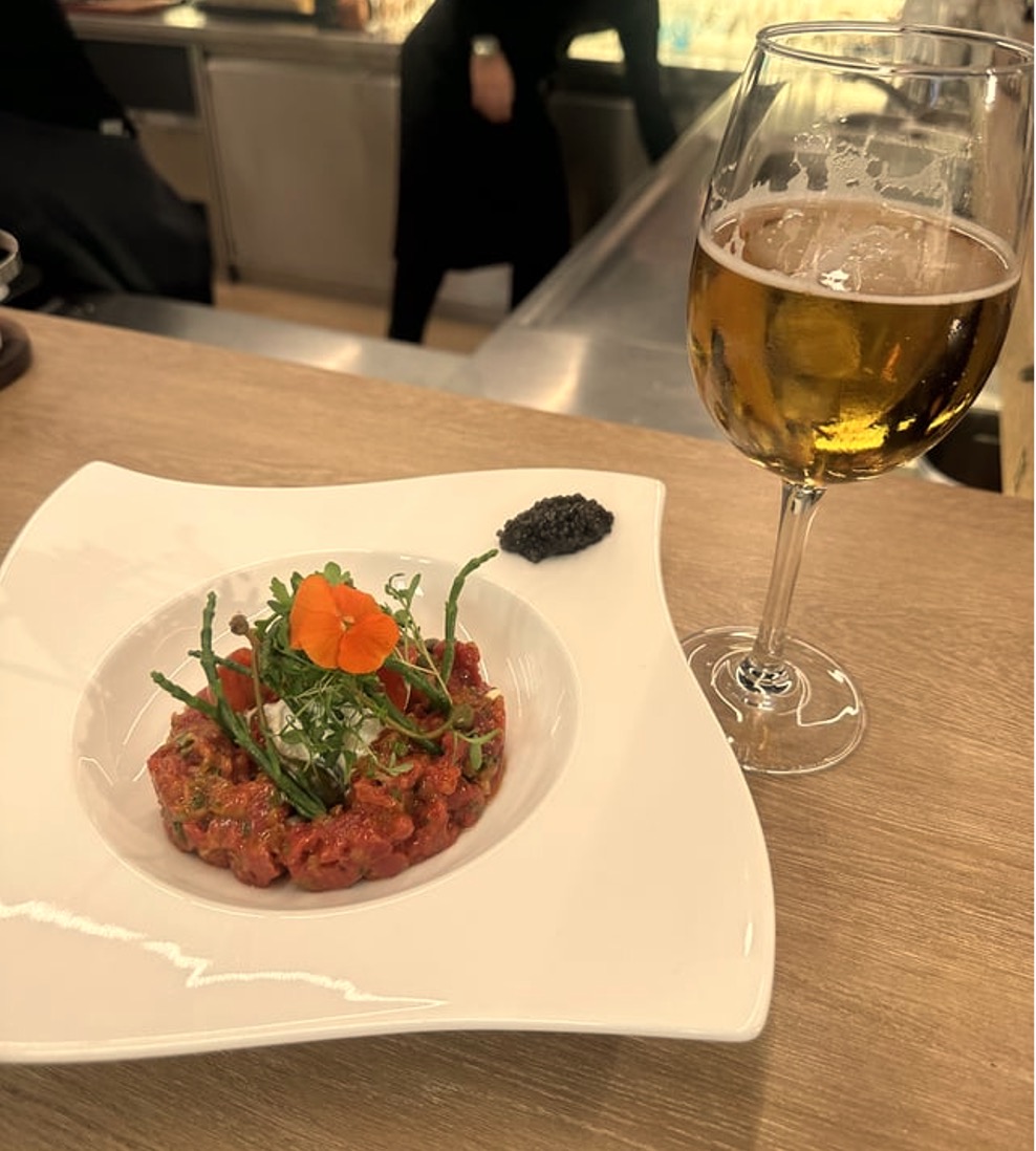 My coworker treated me to dinner at this fine restaurant. White wine and beef tartar really a good combination and on top of that it's my first time having caviar!