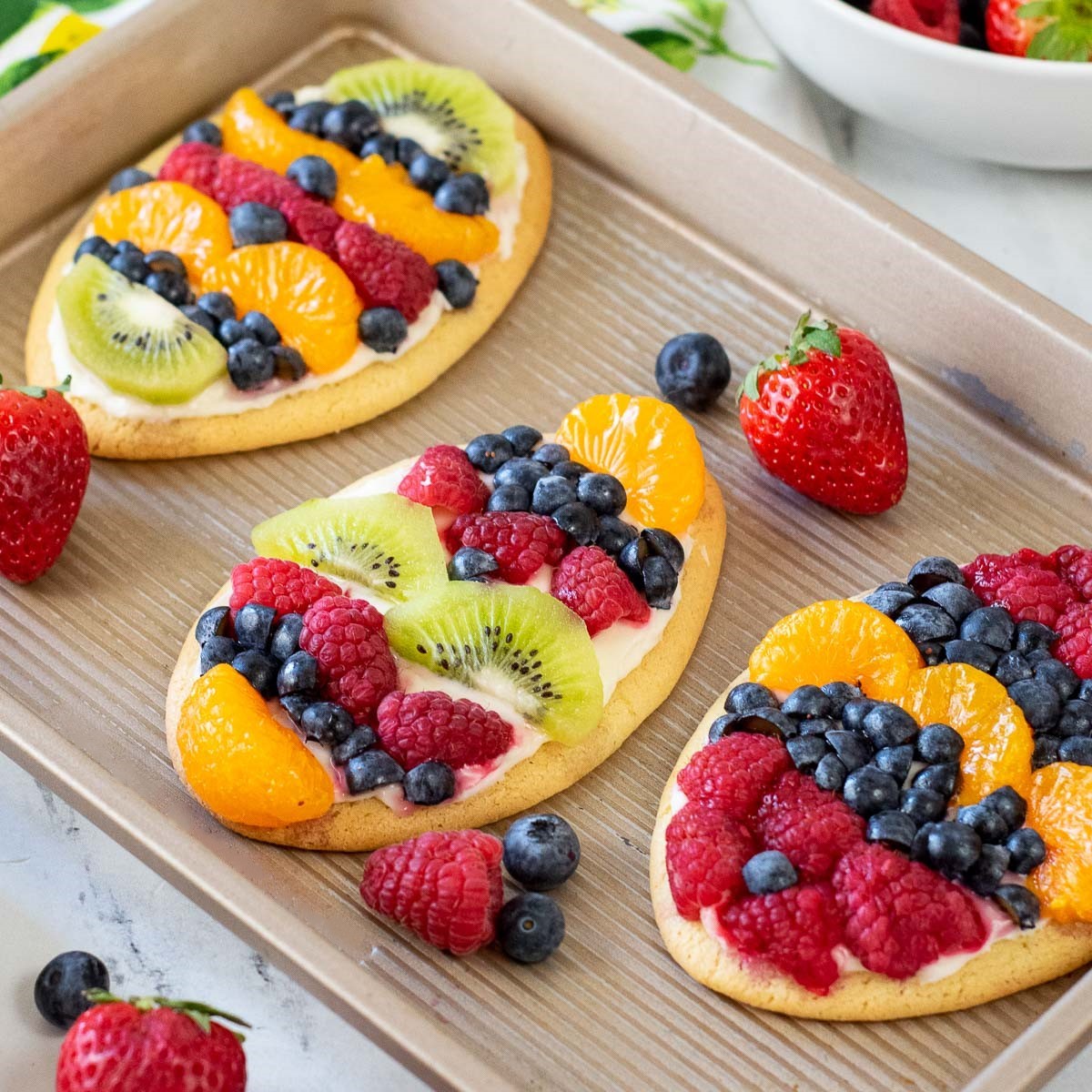 - Refrigerate the fruit pizza for at least 30 minutes to allow the glaze to set.