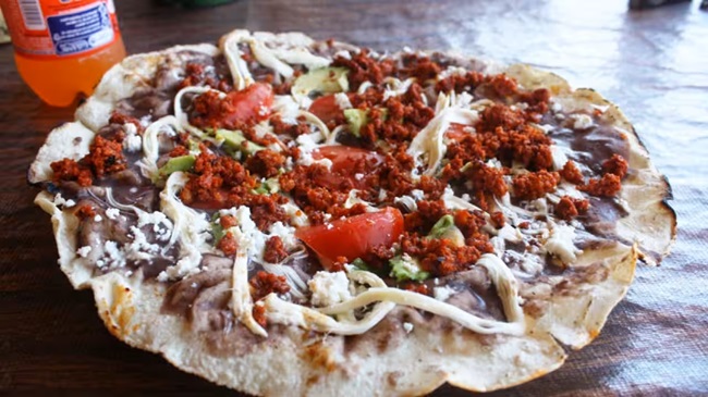 - Top with lettuce, avocado slices, cooked chorizo or cecina, and Oaxacan cheese.